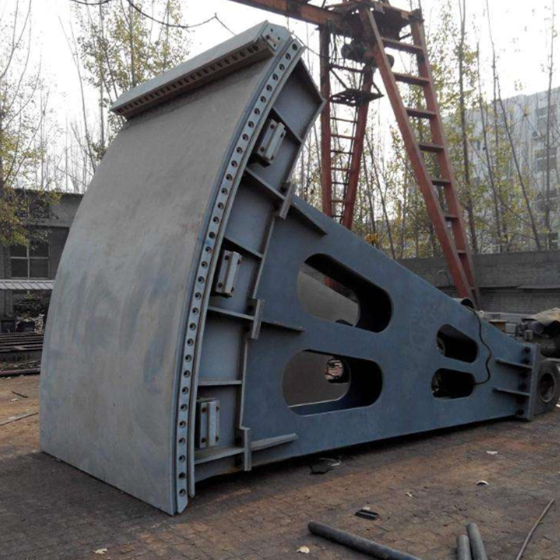 7.将启闭机的中心与平台上的交叉线对齐,将启闭机的底板调平,并用嵌入式钢板进行点焊,将螺杆的下端和闸门的吊耳放到位,穿过销轴,重新检查螺杆的垂直度误差小于1 / 500mm,总长度小于5mm,然后将提升机底板和预埋板焊接在一起。8.将轴导向框架主体安装到位,并用预先固定在螺栓上的套筒将其固定在螺栓上。注意轴导向架管与螺杆之间的同心度,特别是下轴导向架与不锈钢闸门闸门的吊耳之间的距离应大于闸门的直径。在闸门打开和关闭期间,轴导向框架的其余部分不得与螺杆连接套筒发生碰撞。